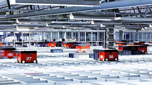 Robot rakodók a raktárban a Komplett.no norvég online áruháznál.
